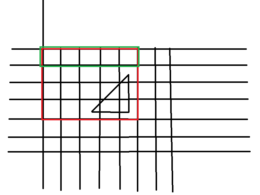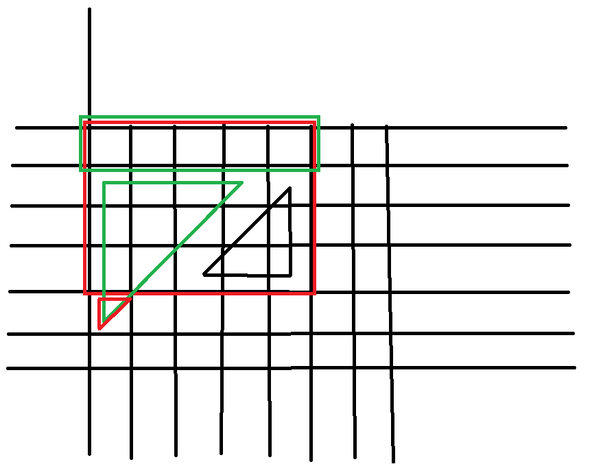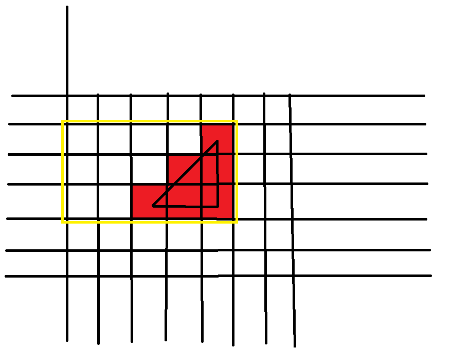 于是我们可以维护一个三角形的前缀和(用两个三角形相减得一个梯形)