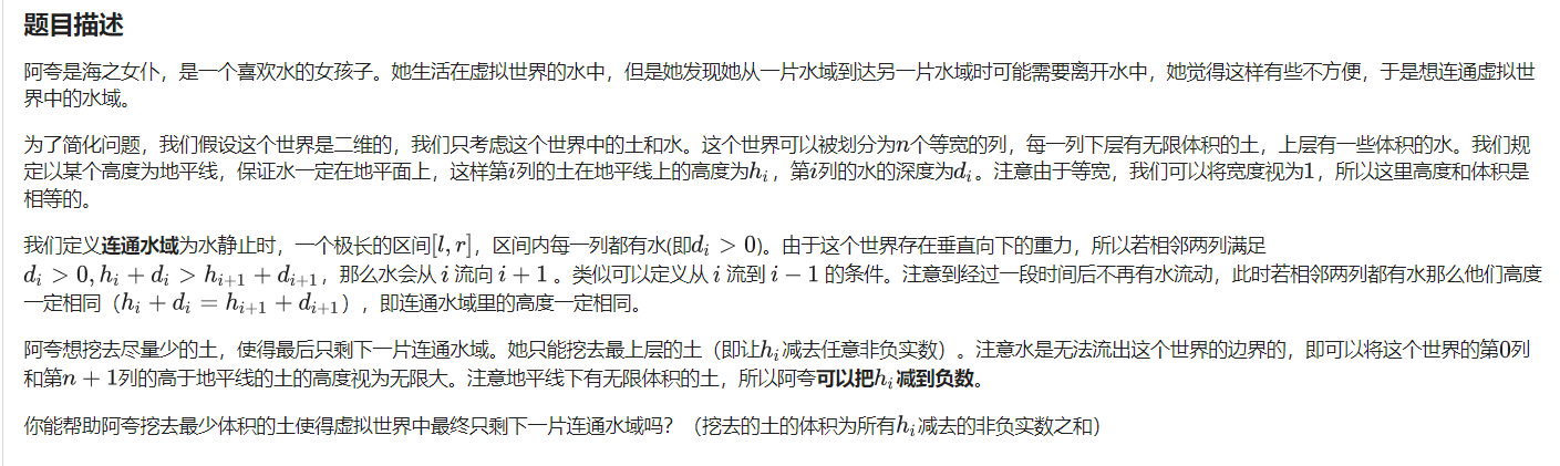 由于当右端点向右走一格,水面是不会上升的,所以我们可以利用这个单调性,先算出整数的水面高度(相当于估一个范围)