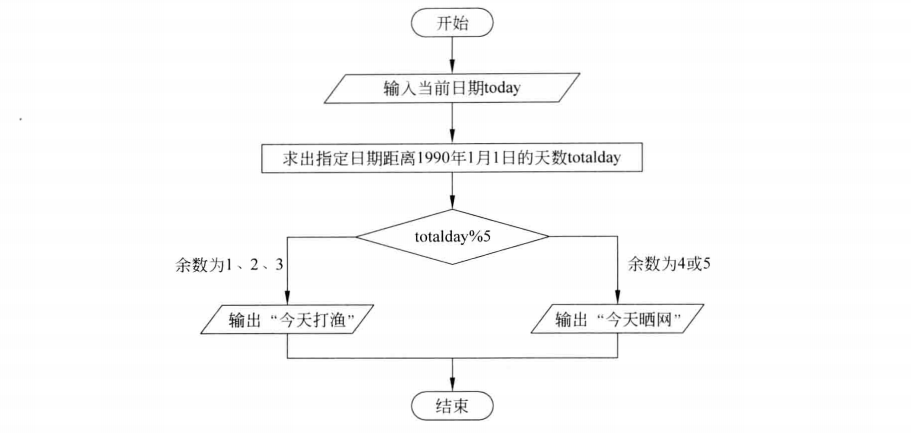 问题描述:中国有句俗语叫"三天打鱼两天晒网"。某人从1990年1月1日起开始"三天打鱼两天晒网",问这个人在以后的某一天中是"打鱼"还是"晒网"。