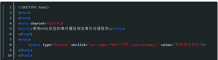 1、使用HTML标签的事件属性绑定处理程序