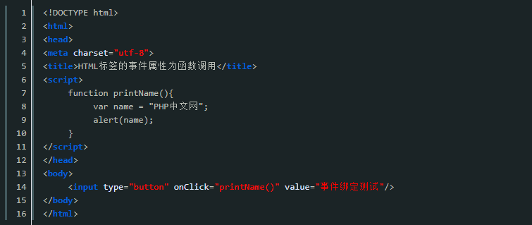 【例 2】HTML 标签的事件属性为函数调用。