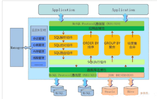 从定义和分类来看,它是一个开源的分布式数据库系统,是一个实现了MySQL协议的服务器,前端用户可以把它看作是一个数据库代理,用MySQL客户端工具和命令行访问,而其后端可以用MySQL原生协议与多个MySQL服务器通信,也可以用JDBC协议与大多数主流数据库服务器通信,其核心功能是分表分库,即将一个大表水平分割为N个小表,存储在后端MySQL服务器里或者其他数据库里。
