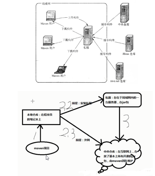 首先maven仓库分为本地仓库和远程仓库,而远程仓库又包括私服和中央仓库。