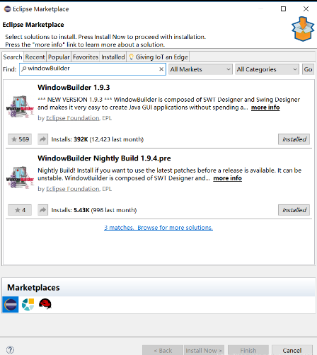 重点:安装如果失败请关闭防火墙重新安装,如果还是安装不了就只能去windowBuilder官网下载其安装包,然后在本地进行安装(安装方法网上自查,很简单)