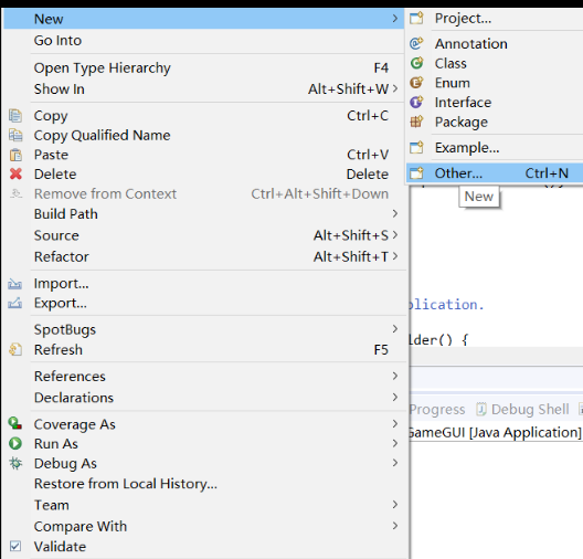 安装成功后我们就可以创建GUI了,在包中右键new,选择other