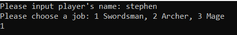 cout << "Please choose a job: 1 Swordsman, 2 Archer, 3 Mage" << endl;