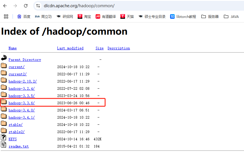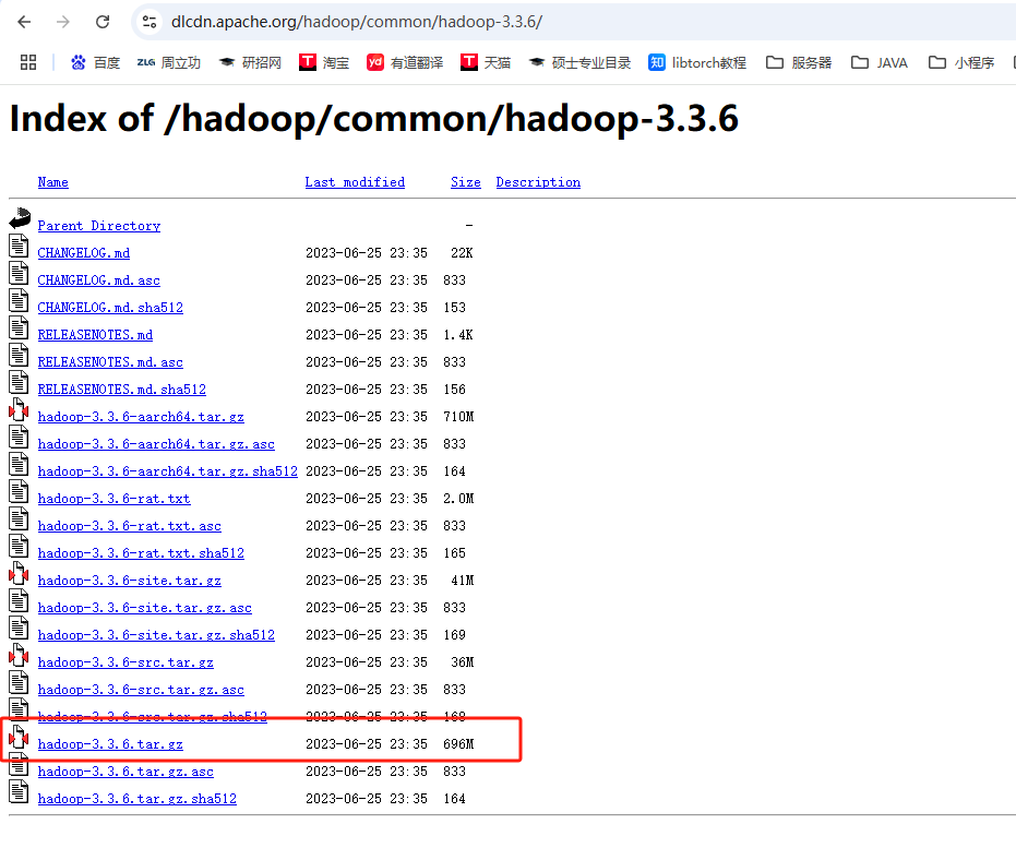 - 下载地址: https://dlcdn.apache.org/hadoop/common/,选择hadoop-3.3.6版本。