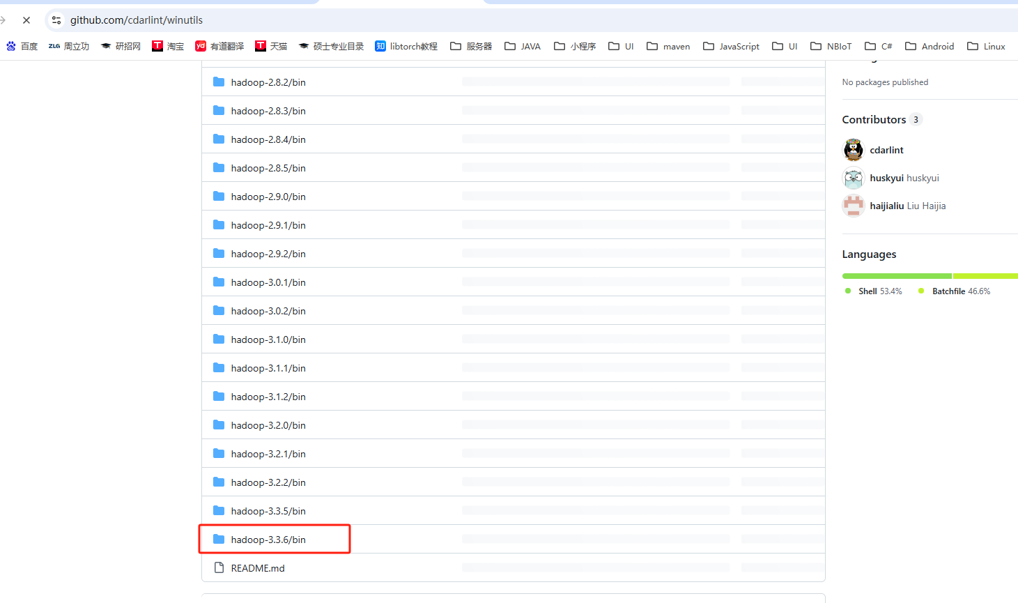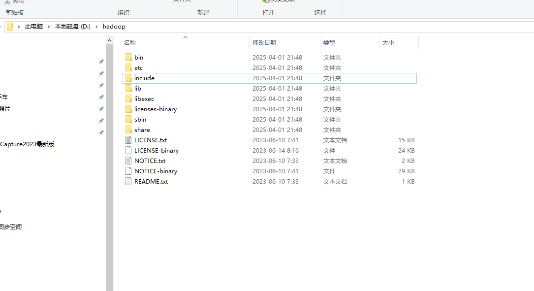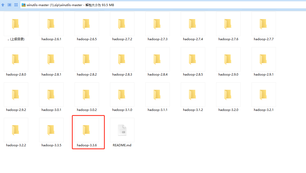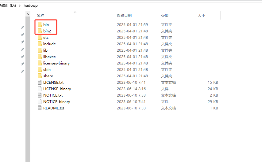 - 下载解压下来,解压到指定的路径:D:\hadoop