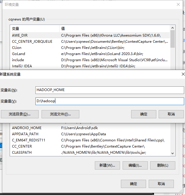 - HADOOP_HOME 对应的值填上面我们记下的安装路径