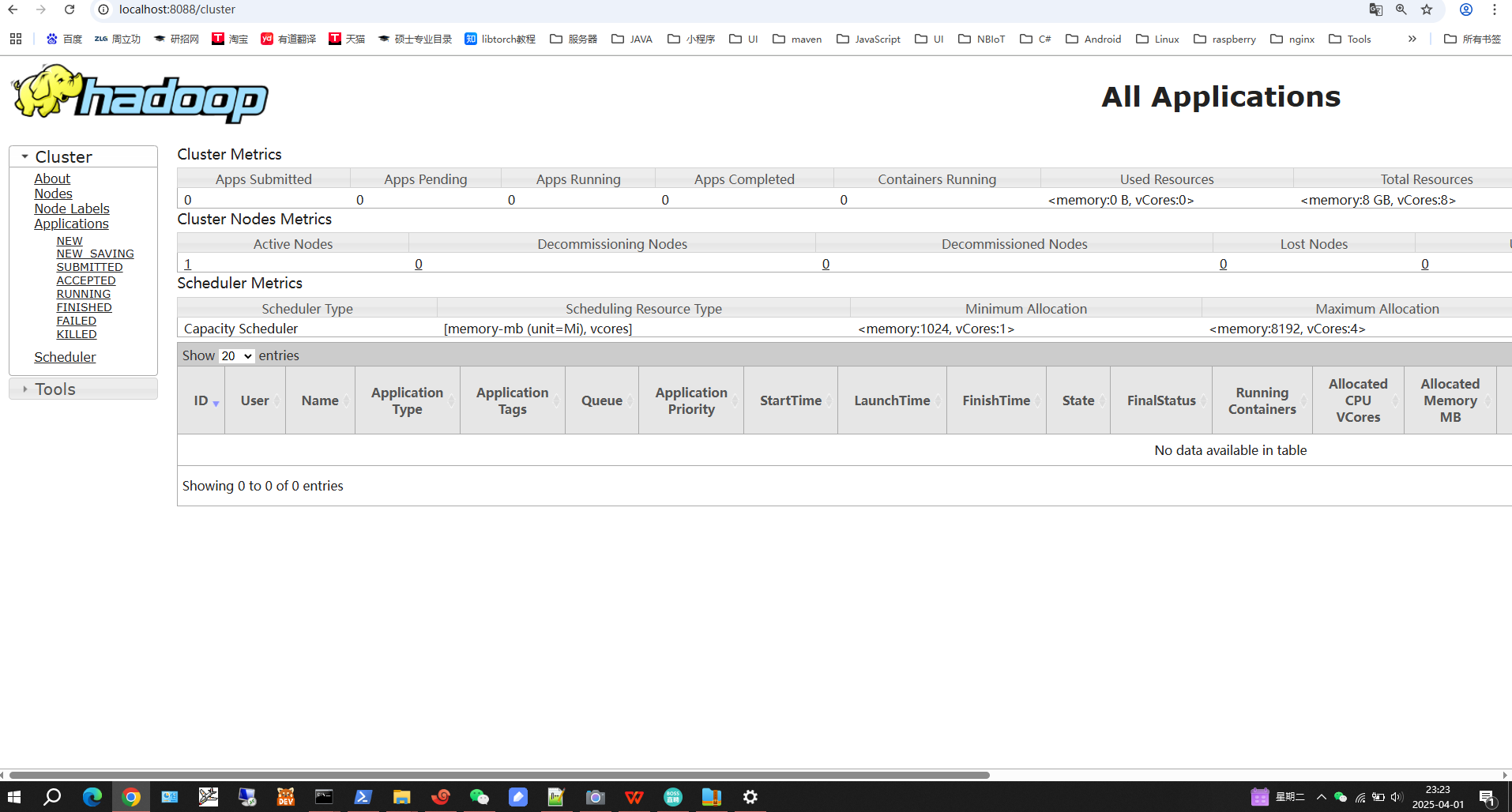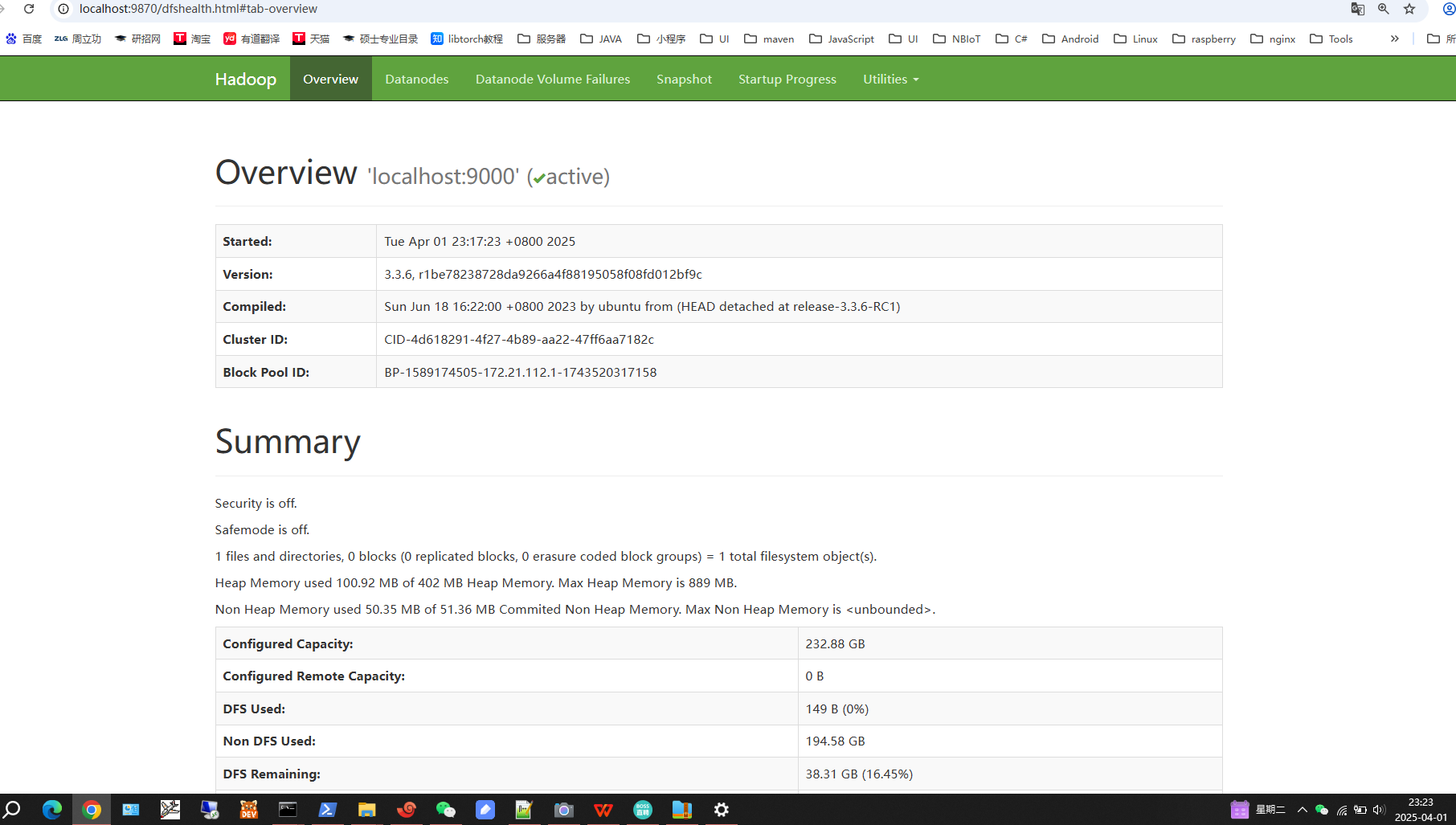 首先在d:\hadoop创建一个data文件夹,然后在data文件夹下面创建三个文件夹,分别是 datanode、namenode、tmp