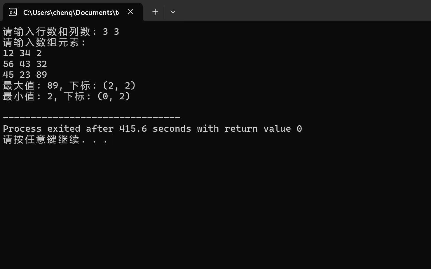 printf("最大值: %d, 下标: (%d, %d)\n", max, maxRow, maxCol);