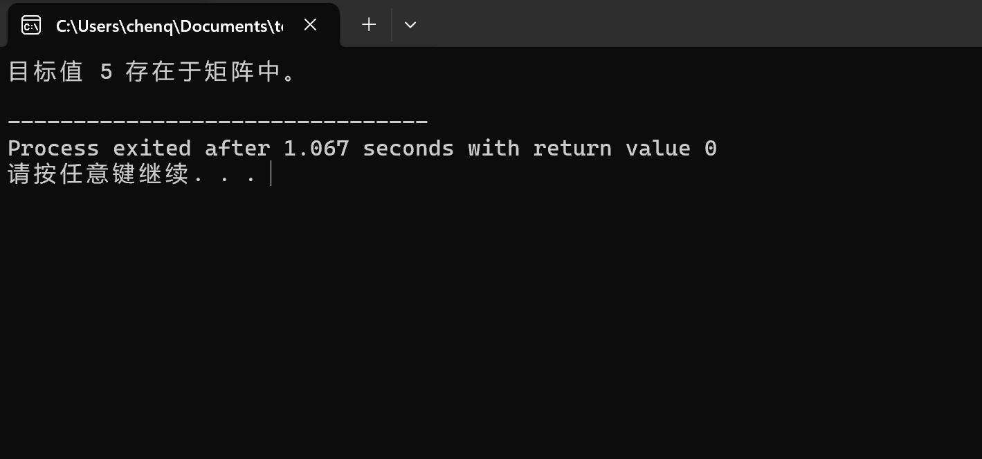 printf("目标值 %d 不存在于矩阵中。\n", target);