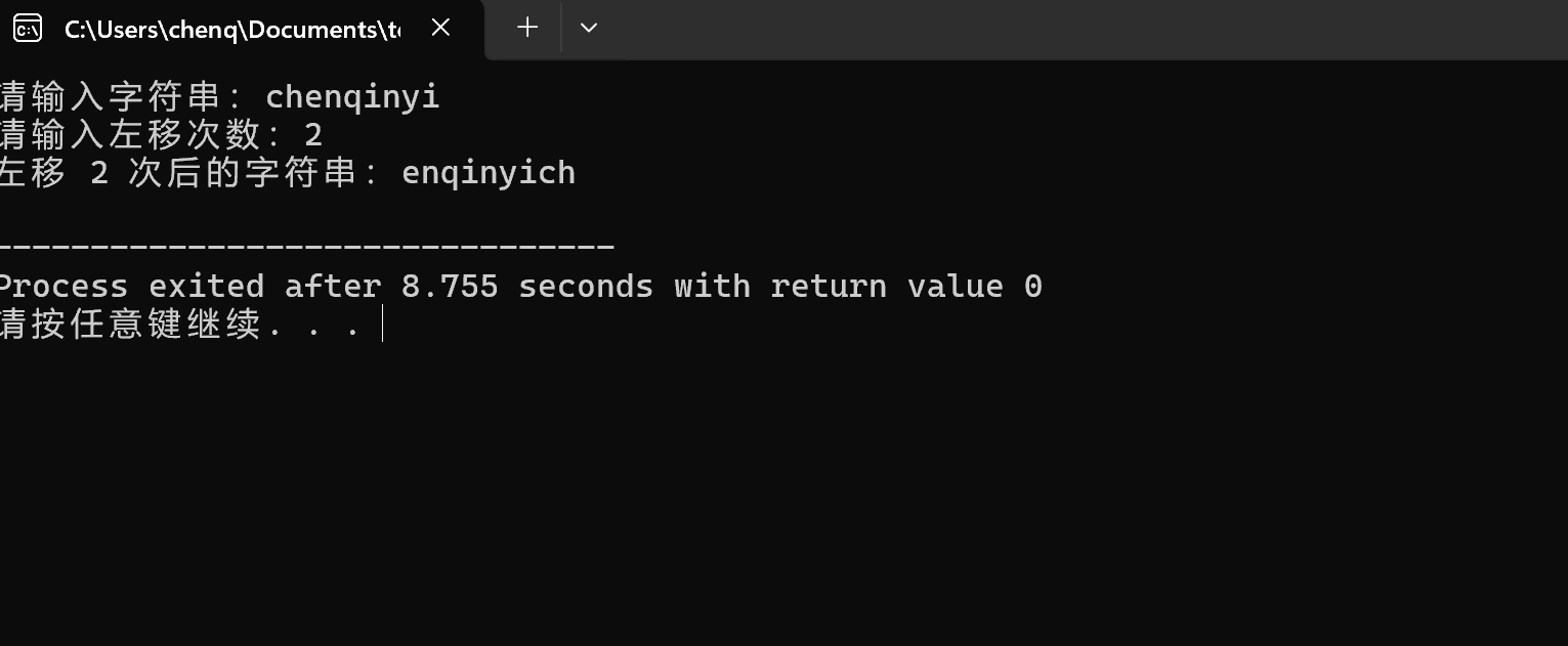 printf("左移 %d 次后的字符串:%s\n", n, s);