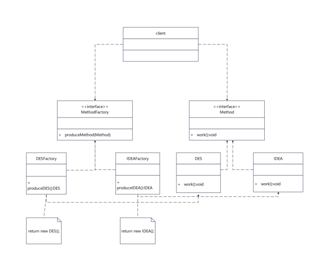目前常用的加密算法有DES(Data Encryption Standard)和IDEA(International Data Encryption Algorithm)国际数据加密算法等,请用工厂方法实现加密算法系统。