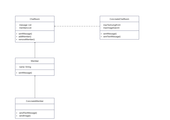 ConcreteMember member1 = new ConcreteMember("Alice", chatRoom);