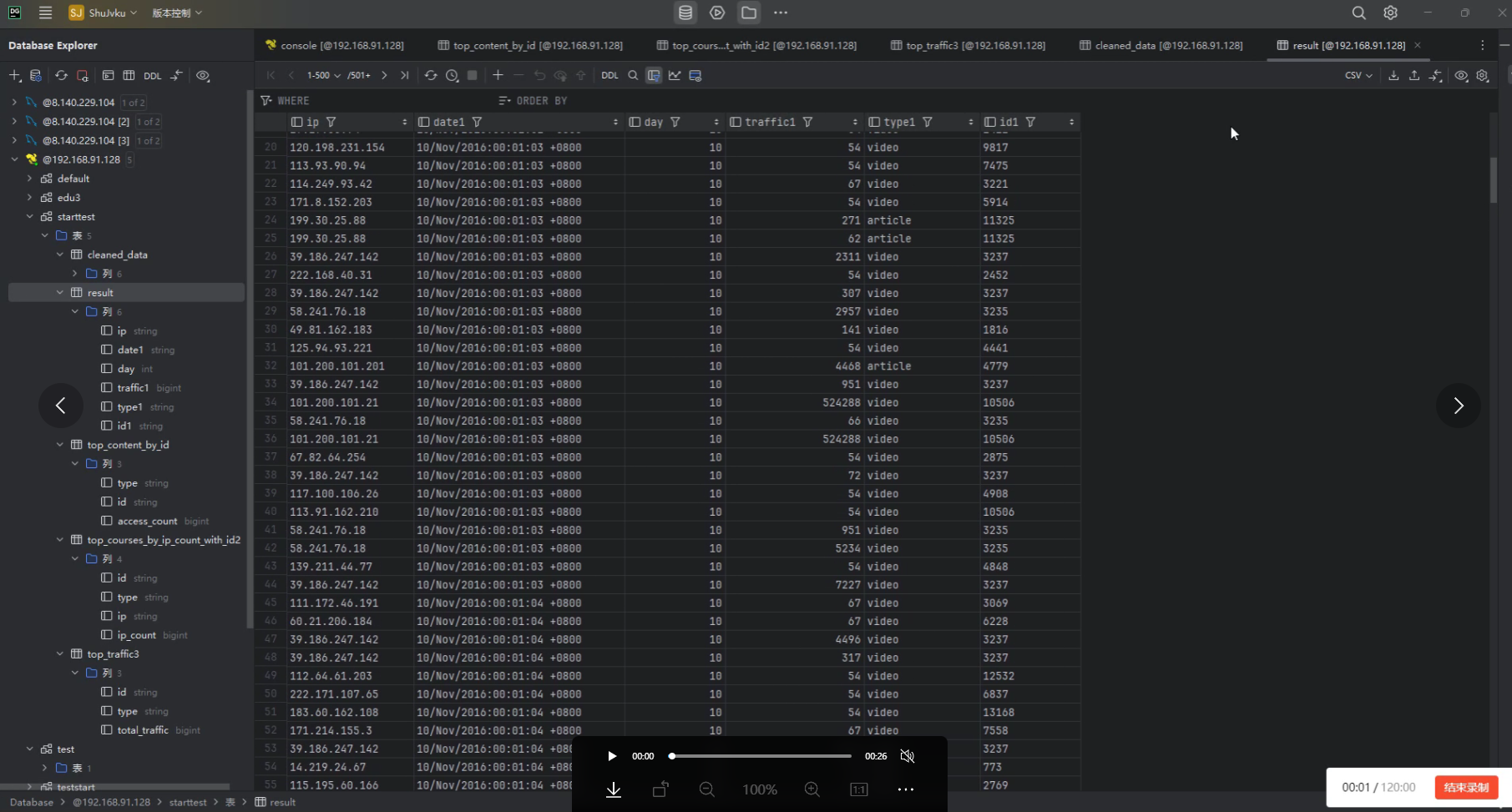 课前测试主要是对一部分数据清洗,然后使用hive注入数据后 清洗成需要的格式