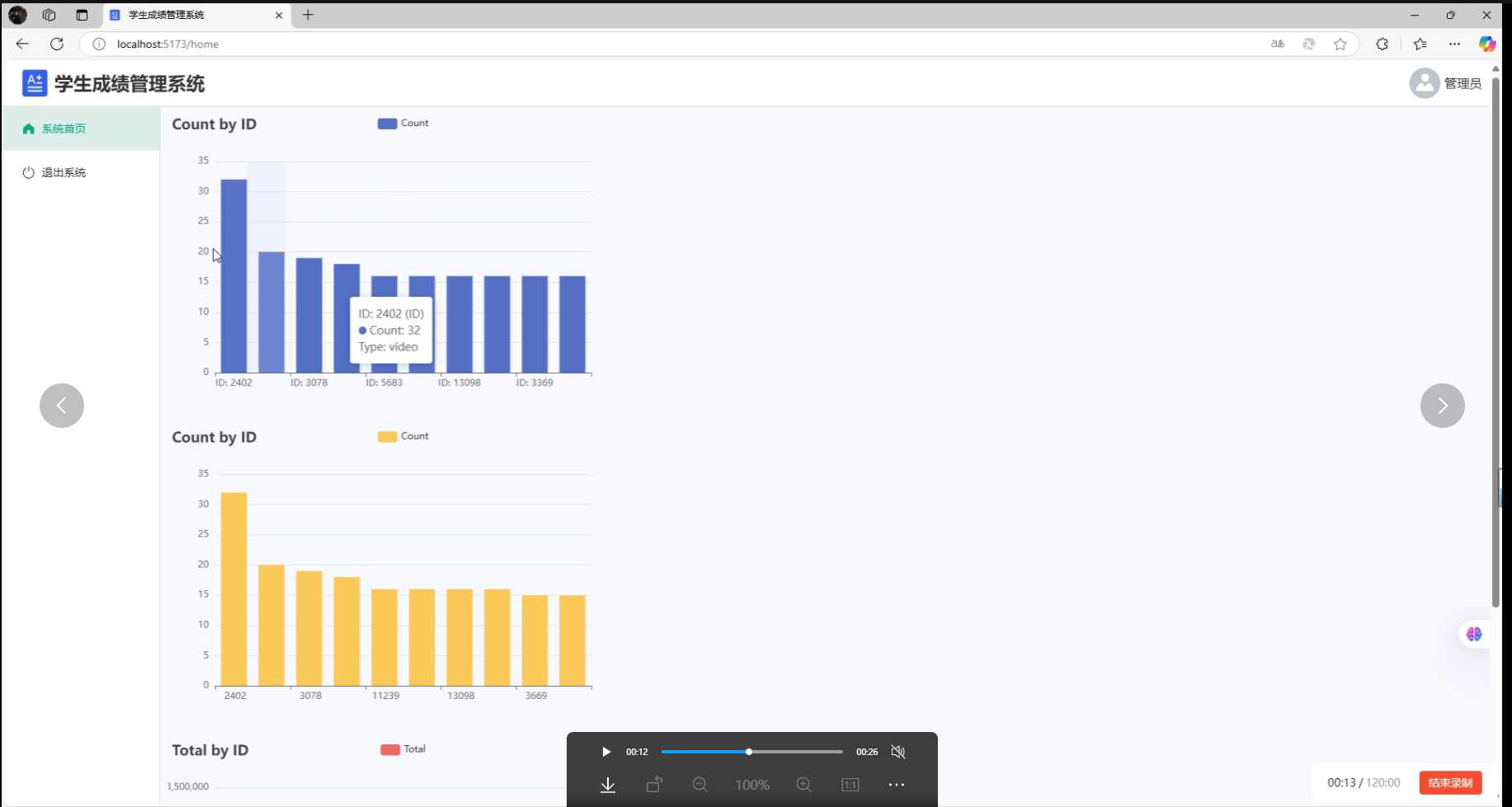 然后使用echart图表来将这些统计到的数据通过柱状图的形式表现出来