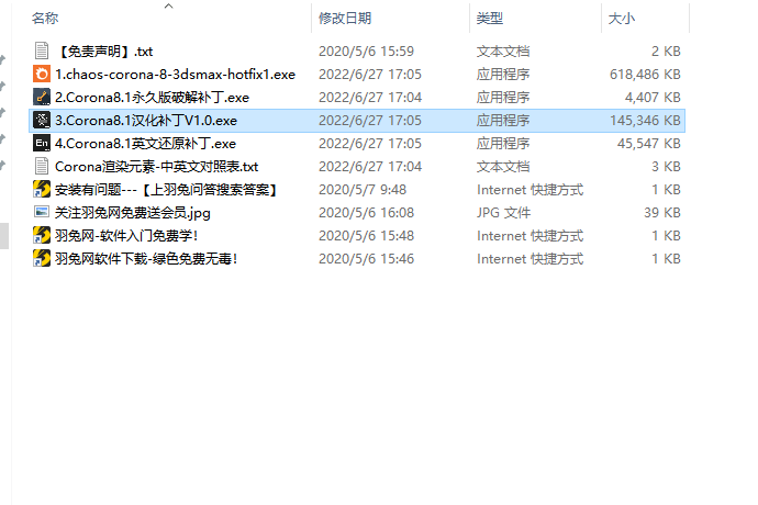 10,回到安装包文件夹,双击3.Corona8汉化补丁V1.0
