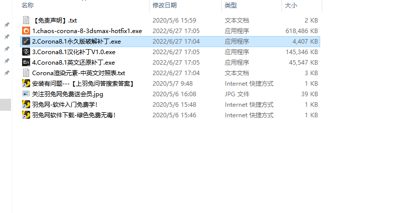 7,回到安装包文件夹,双击2.Corona8.1永久版补丁