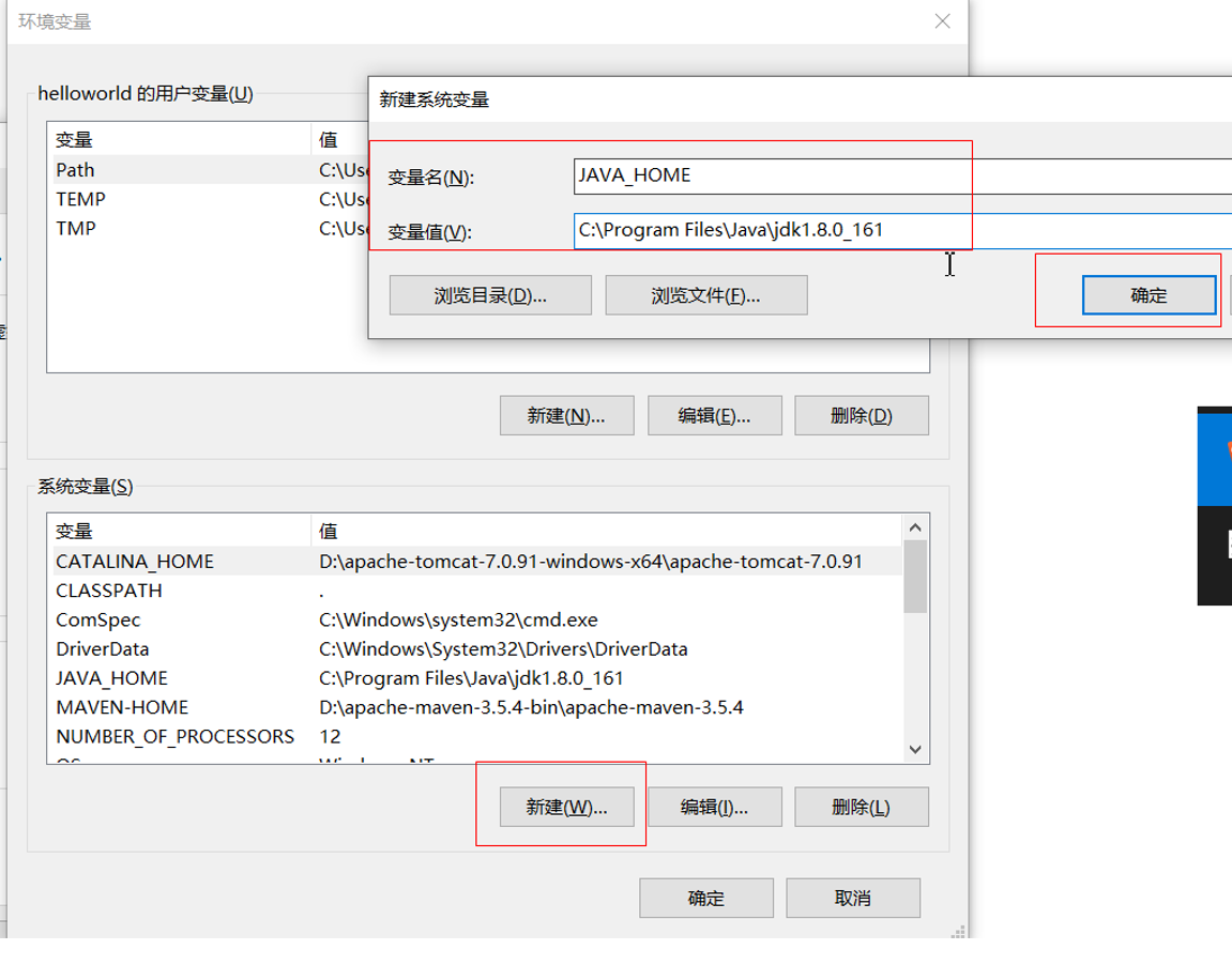 变量值:jdk bin的上一级目录(C:\Program Files\Java\jdk1.8.0_161)