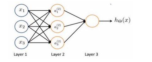 神经网络模型由许多逻辑单元按照不同层级组织起来的网络,每一层都是下一层的输入变量如图第一层为输入层