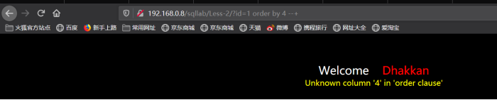 order by 栏位号就可以依次指定查询第几列了?id= 1' order by 1 --+这个地方之所以写个+是因为url编码+是空格, 不然注释不掉后边的sql![]()
