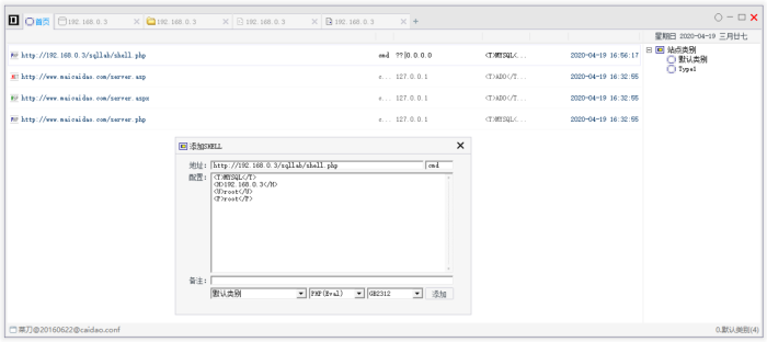 再介绍一下使用菜刀获取数据库的。