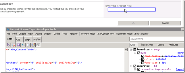 I was investigating on what exactly are the differences between a SharePoint farm with Standard CAL and Enterprise CAL. And even more, with/without Office Web Apps. So first I got my single server installation built, with Office Web Apps, and took several screenshots. Then I go ahead to input my Enterprise key in Convert License Type page.