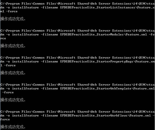 PS:卸载Feature命令:*代表Feature.xml的父文件夹。如果不提示强制卸载可以不用加-force。