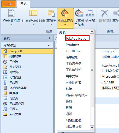 1. 点击新建列表工作流,点击文档库JobApplication。