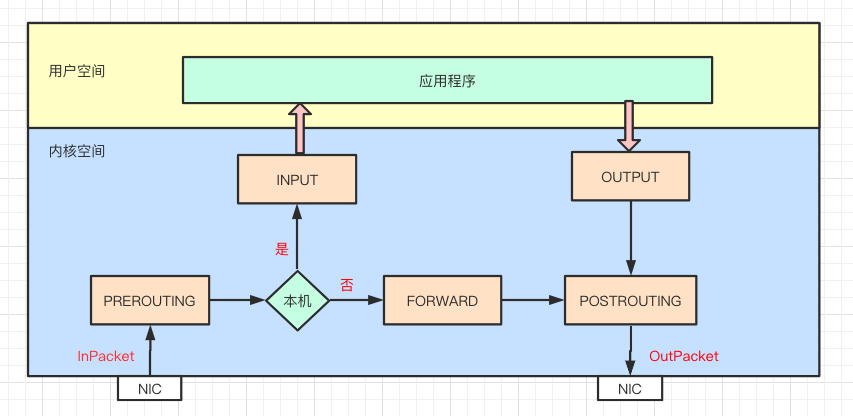 INPUT:通过路由查找,确定发往本机的包,通过此处 -