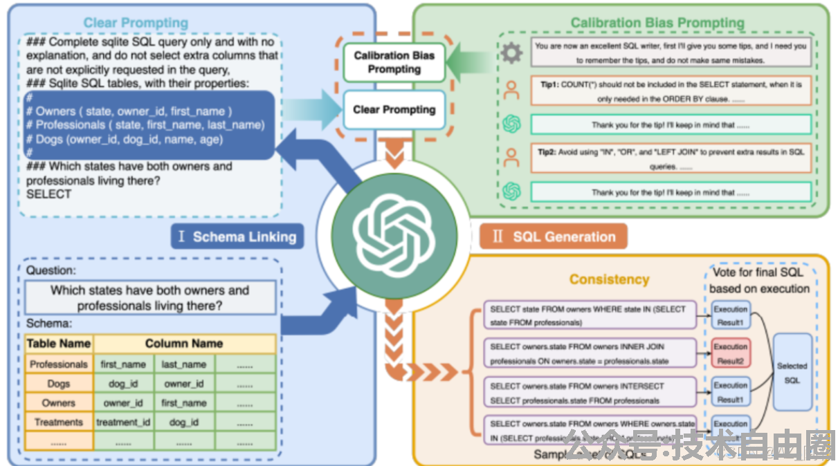 一个重要的思想是,在构建Prompt之前,先通过大语言模型来分析本次输入最可能相关的数据实体(table)及其列(column)信息,即仅召回本次最可能用到的table和column,然后组装到Prompt,而不是把整个数据库的结构全部组装进入。