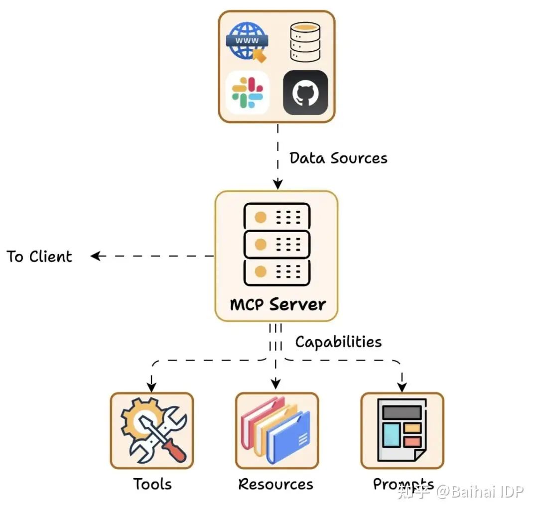 一句话解释就是 MCP 提供给 LLM 所需的上下文:Resources 资源、Prompts 提示词、Tools 工具。