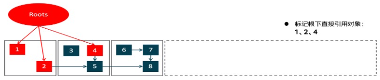 - 通过三色标记法,在初始标记(STW)标记GC Roots直接引用对象