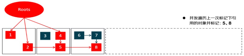 - 并发标记阶段处理快照后的引用变更,通过写屏障记录变更到SATB队列。