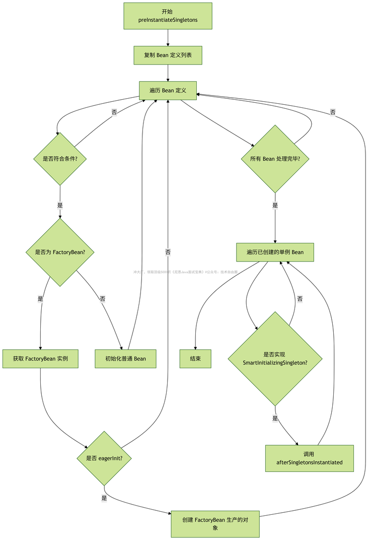 总结来说,finishBeanFactoryInitialization 和 preInstantiateSingletons() 是 Spring 容器启动时非常重要的两个方法,它们负责把所有的单例 Bean 提前创建好,确保系统在运行时可以直接使用这些对象。