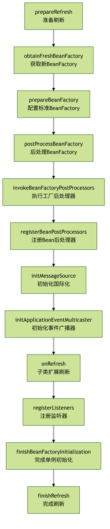 简单来说,这个阶段就是确保所有的单例 Bean 都初始化完成后,再启动那些需要运行的组件,并通知监听器,表示整个容器已经完全准备好可以用了。