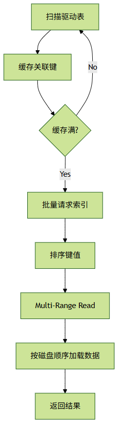 它会先从驱动表中读取一条记录,然后在被驱动表上利用索引查找匹配的记录,重复这个过程,直到驱动表中的所有记录都处理完毕。