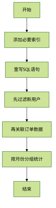 表中筛选出新用户(用了索引)。 - 第二步是把这些用户和他们的订单做关联。