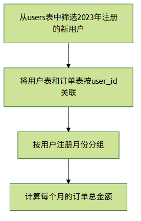表里找这些用户的订单数据。 - 最后按月份统计总消费金额。