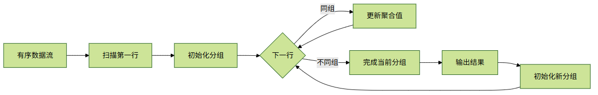 - 发现分组字段变化时,就知道进入新分组了