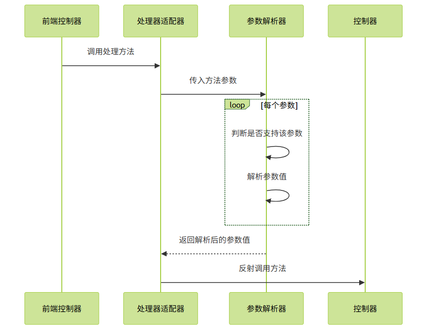 (4) 所有参数解析完成后,返回一个参数值数组给处理器适配器。