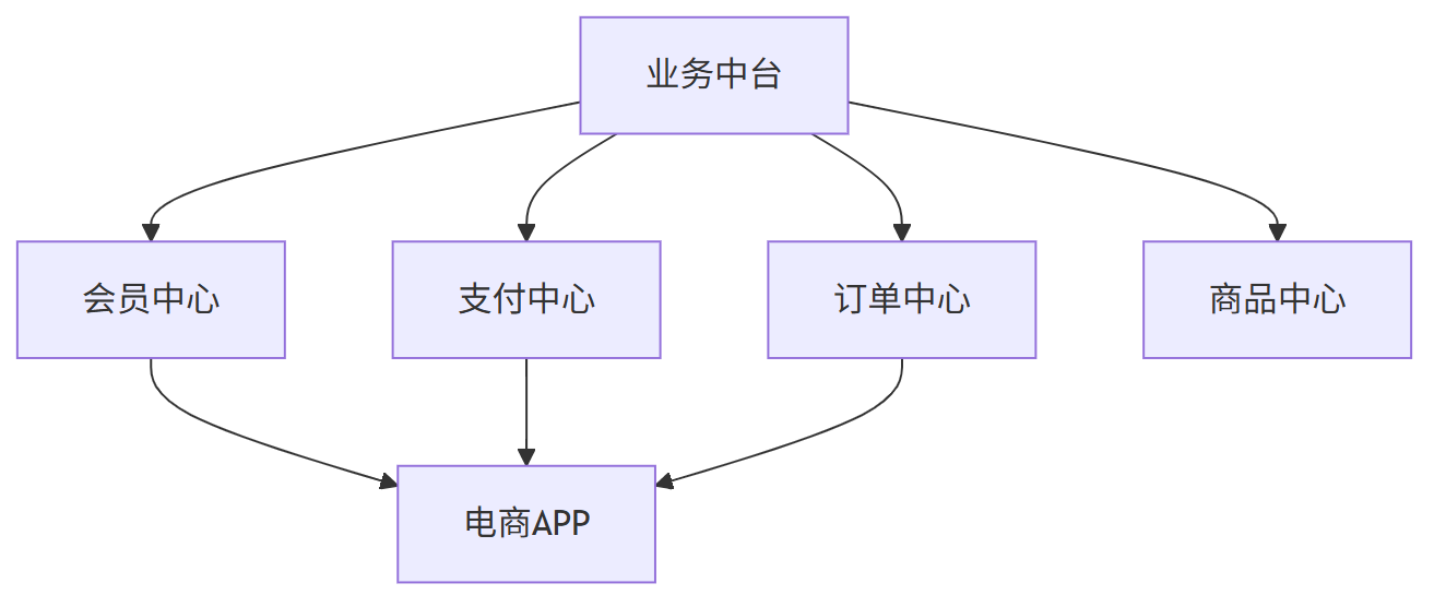 - 举例:阿里的 “共享业务事业部” 就是典型的业务中台,统一支撑淘宝、天猫、聚划算等多个前端业务的商品、交易、会员等核心能力。