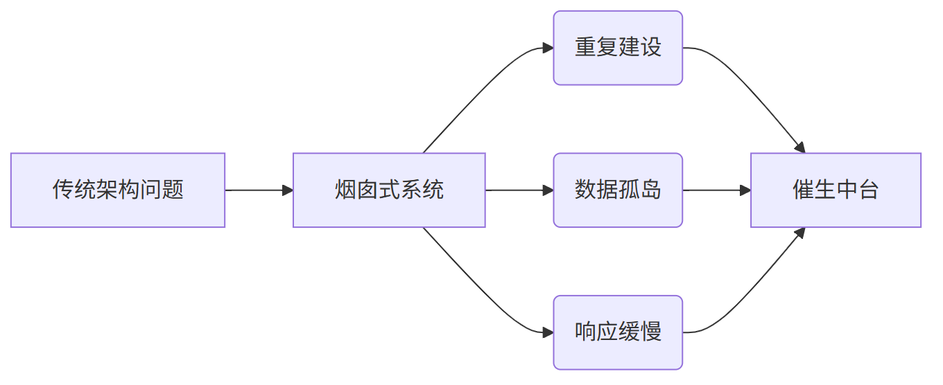 | 维度 | 传统烟囱架构 | 中台架构 |