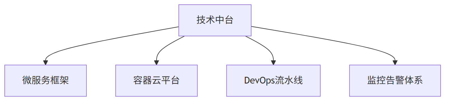 - 本质:将通用的技术能力(如服务器资源、数据库、安全防护、消息队列、容器化部署等)标准化、平台化,减少技术重复开发,降低业务创新的技术门槛。
