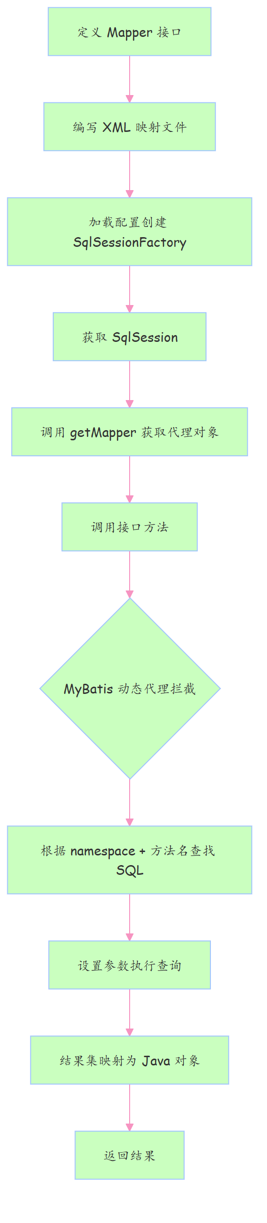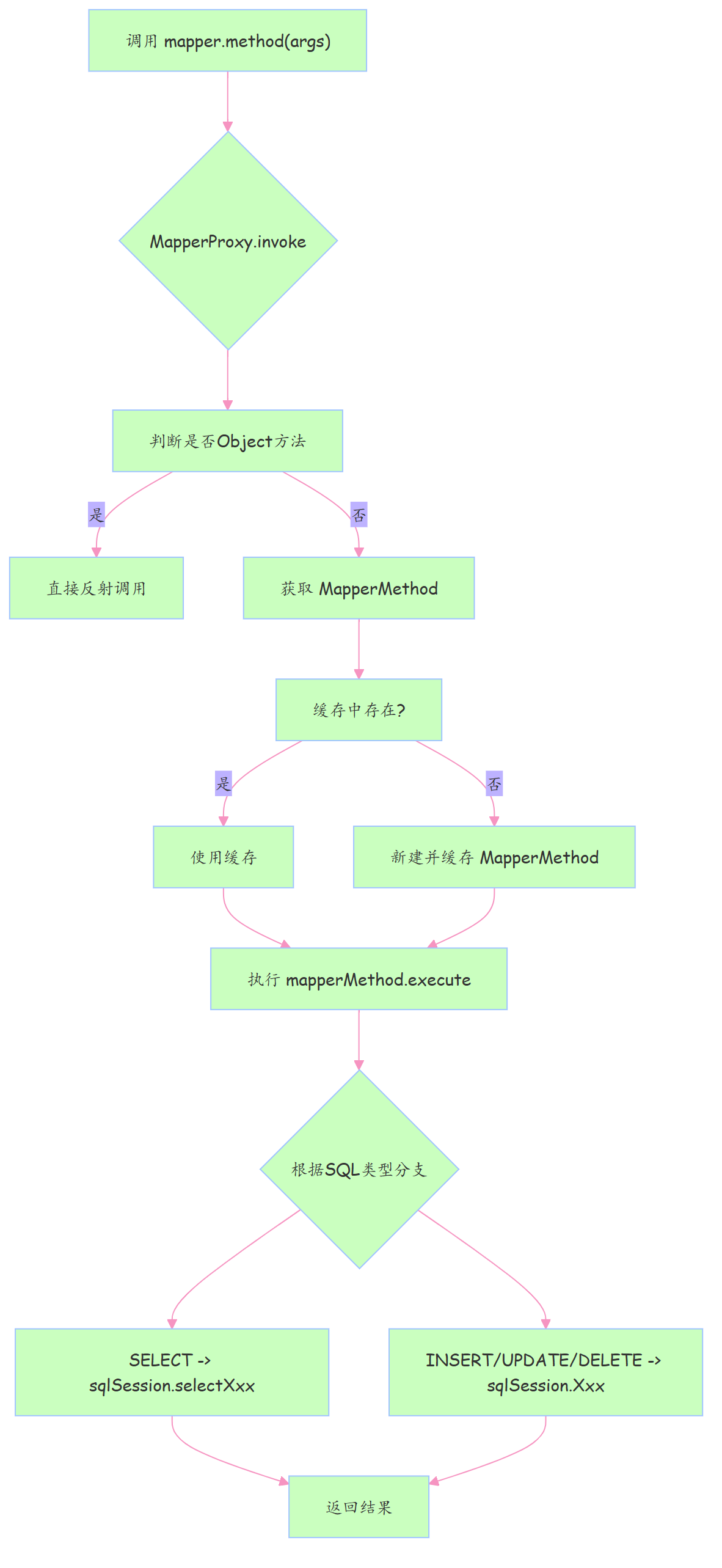 Mapper 方法调用全过程(Mermaid)流程图: