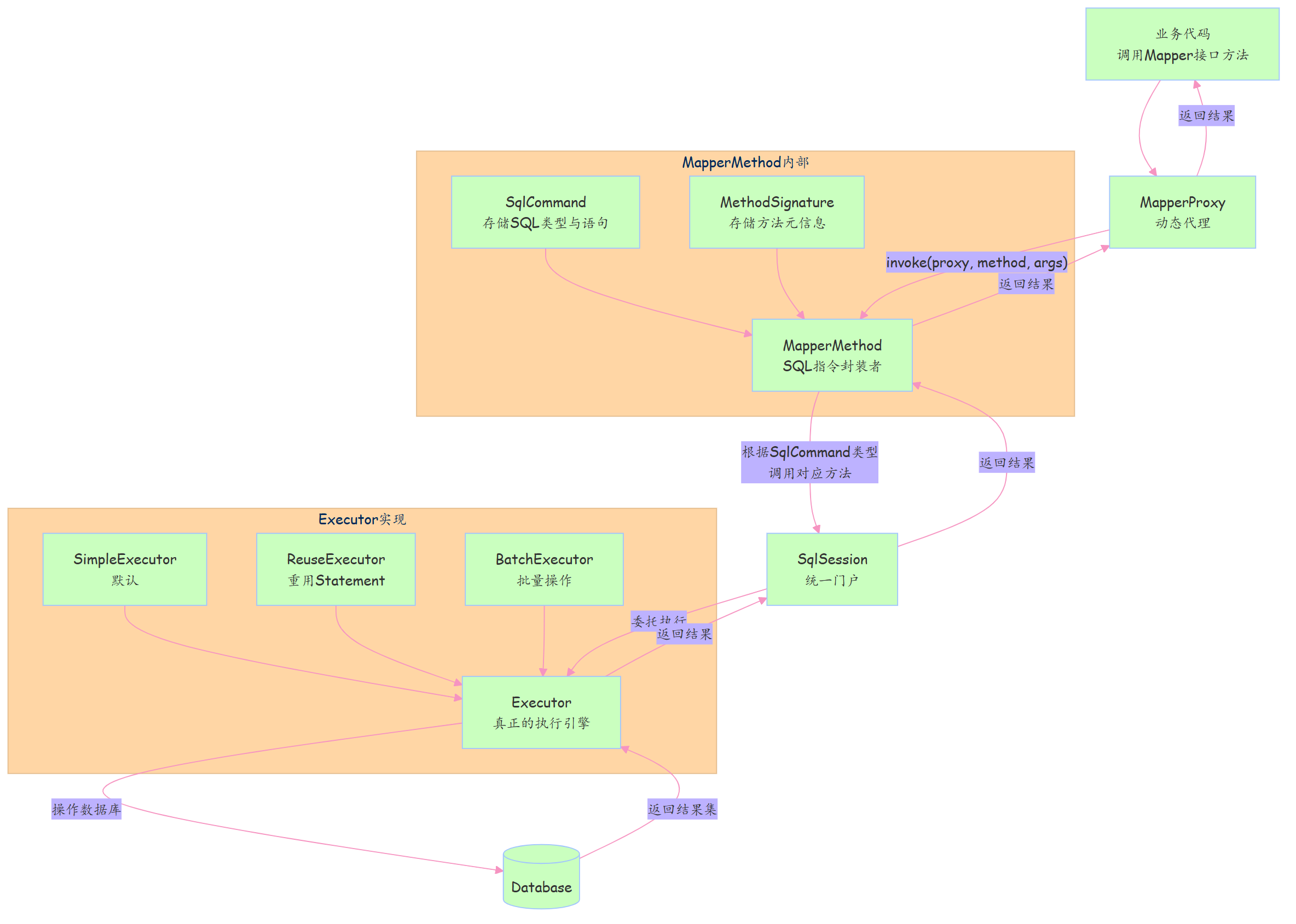 - MapperMethod:封装了 SQL 指令和执行逻辑