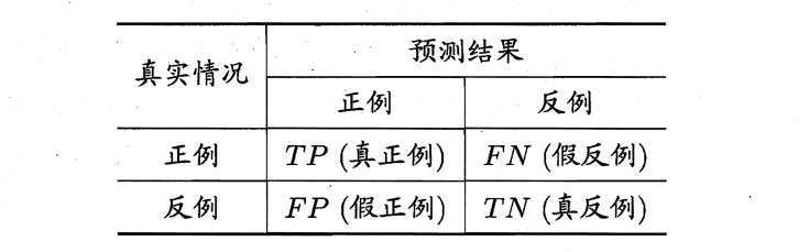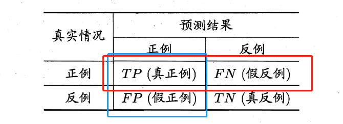 对于二分类问题,可将样例根据其真实类别与学习器预测类别的组合划分为真正例(\(true\) \(positive\)) 、假正例 (\(false\) \(positive\)) 、真反例(\(true\) \(negative\)) 假反例 (\(false\) \(negative\)) 四种情形,用\(TP、FP、TN、FN\)分别表示其对应的样例数。