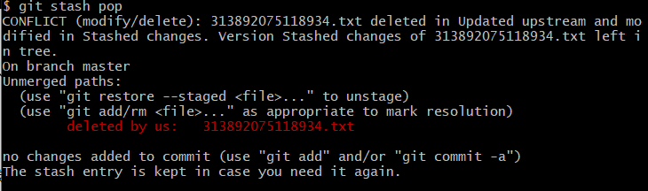 发现还真有东西,使用git stash pop命令,将stash中的东西弹出: